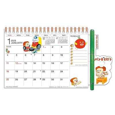 大人気絵本パンどろぼうの卓上カレンダー。ペンホルダーもついています。メモ用と、TODOリスト用の2種類の付箋もついているお得感まんさいのカレンダー。