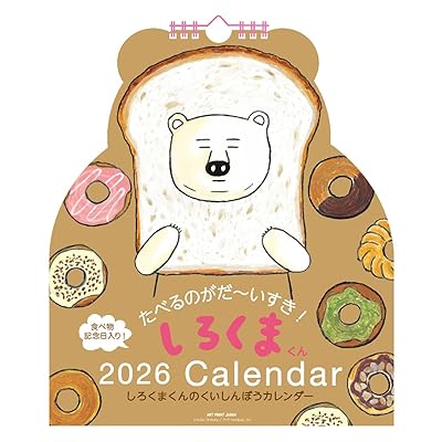 柴田ケイコさんの大人気絵本しろくまくんのカレンダー。たべものの記念日が書いてあって、(1/15はイチゴの日など)楽しく一年を過ごせそう。