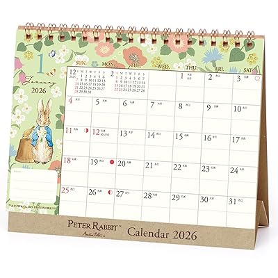 ピーターラビットの卓上カレンダー。書き込み欄とメモ欄と2か所に書き込めます。祝日、月の満潮、六曜も記載してあり、小さいながらも機能的なカレンダー。