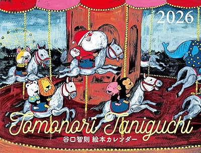 「100にんのサンタクロース」の作家谷口智則さんのキャラクターが集合した、壁掛けカレンダー。季節を感じられる絵柄で、楽しく1年を過ごせそうです。
